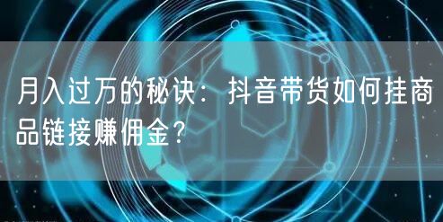 月入过万的秘诀:抖音带货如何挂商品链接赚佣金?