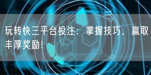 玩转快三平台投注:掌握技巧,赢取丰厚奖励!