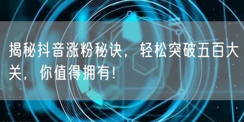 揭秘抖音涨粉秘诀,轻松突破五百大关,你值得拥有!