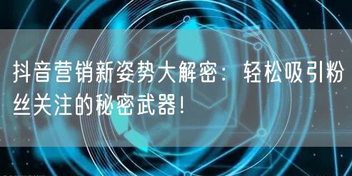 抖音营销新姿势大解密:轻松吸引粉丝关注的秘密武器!