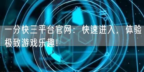 一分快三平台官网:快速进入,体验极致游戏乐趣!